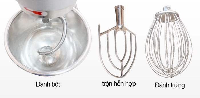 Máy trộn bột 20 lít sở hữu 3 loại càng đánh sử dụng đa năng